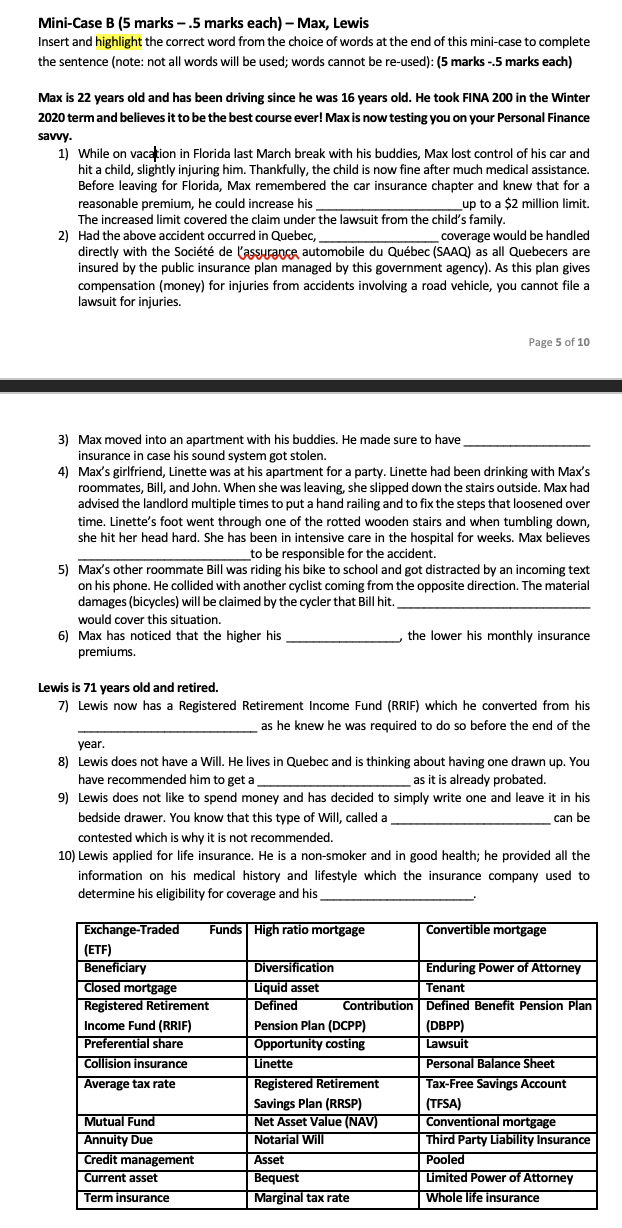 Mini Case B 5 Marks 5 Marks Each Max Lewis Chegg Com